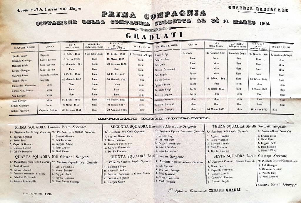 Per la Prima Compagnia, di stanza a San Casciano, è conservato nell’Archivio Comunale il ruolo completo a stampa, magari ritrovate qualche bisnonno …